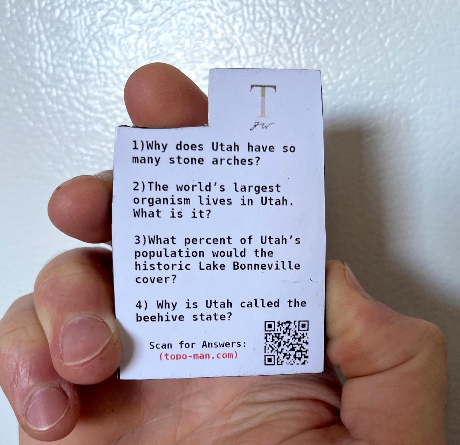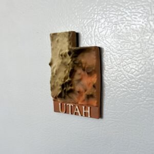 The state of Utah, shrunk 9 million times to fit in your hand. Featuring 3D peaks and beautiful colors, this magnet grabs attention no matter where it’s placed. A handmade work of art crafted in Logan, Utah!